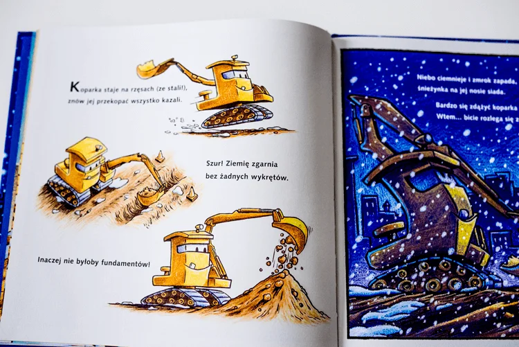 Świąteczne wydanie hitu, który na pewno każdy z Was zna – „Snów kolorowych placu budowy”. W „Wieczorze gwiazdkowym na placu budowy” znów spotkamy tych samych bohaterów – koparkę, wywrotkę, betoniarkę. Jednak tym razem będą podnosić, kopać, zgarniać, mieszać w innym celu – przygotowują bowiem pewną niespodziankę bożonarodzeniową. Must have dla wszystkich fanów i fanek pojazdów i maszyn budowlanych.